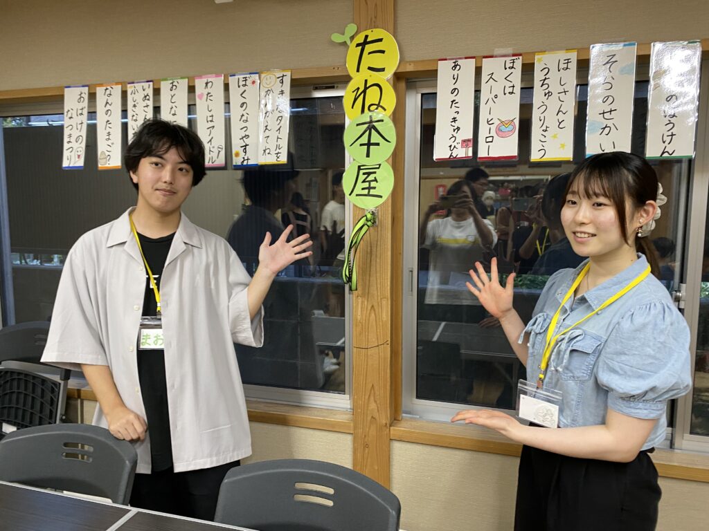 当日は、たね本屋のコーナーで、学生ボランティアがこども達と絵本作りをしました。