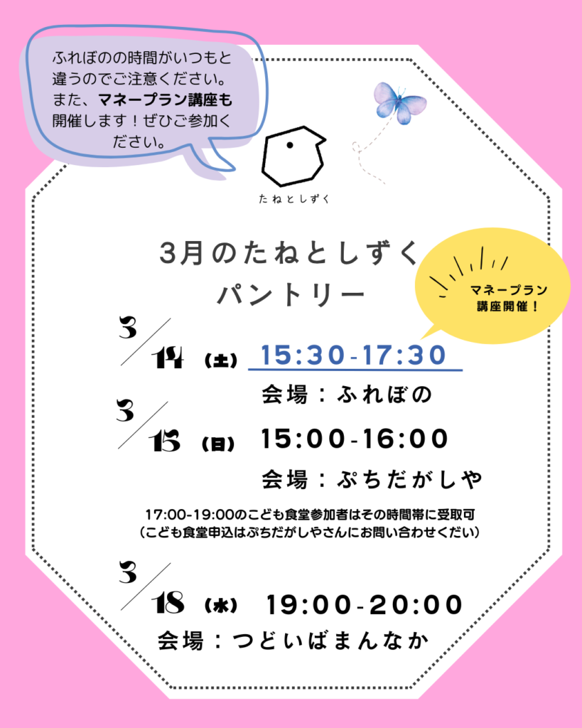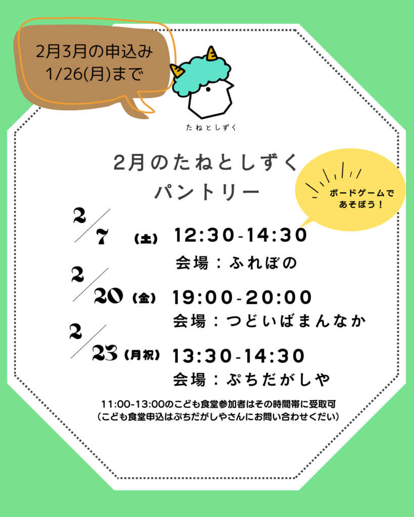 2月3月のたねしずパントリー(フードパントリー)の受付を開始しました。