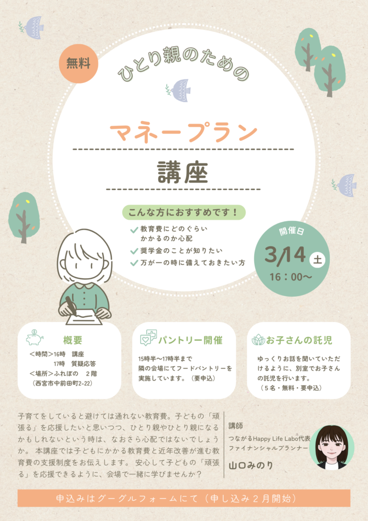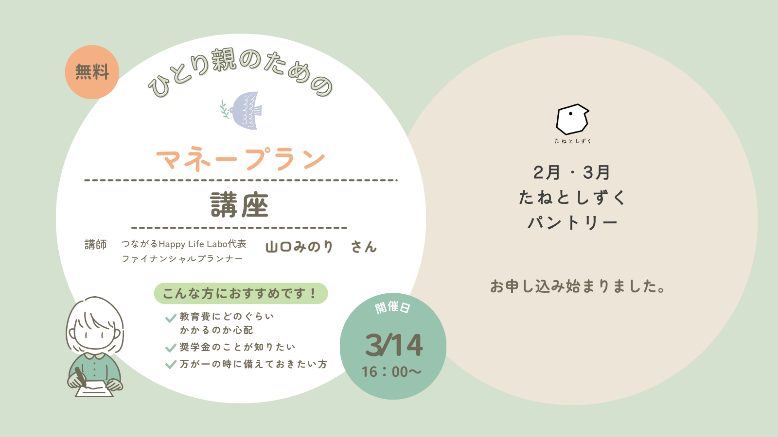 ひとり親さんが知っておくといい情報をお伝えいただきます。