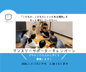 【NPO設立3周年記念】マンスリーサポーター募集キャンペーン実施します。〜プラス100人のしずくに挑戦〜