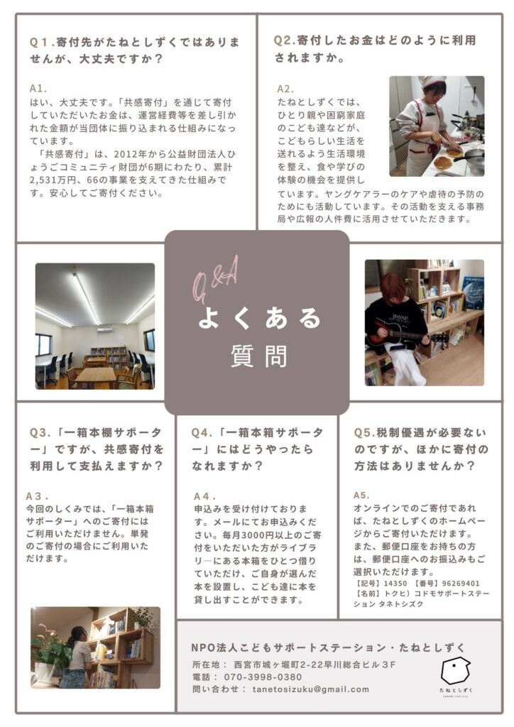 当団体へのご寄付は、「公益社団法人ひょうごコミュニティ財団」の