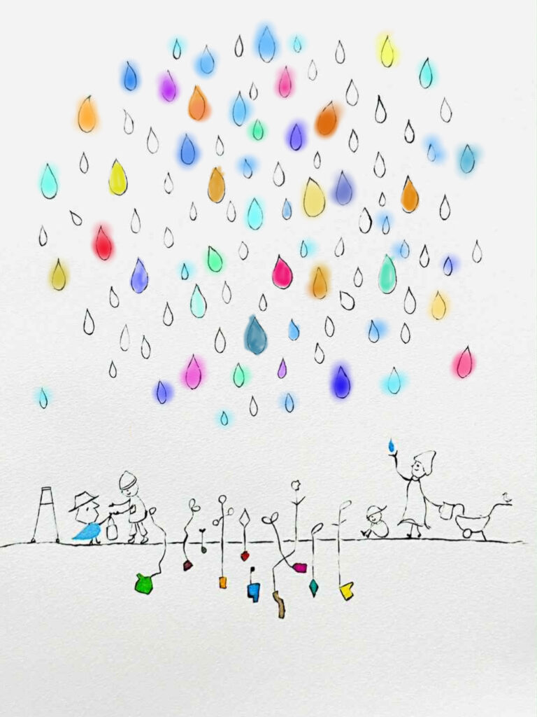 寄付者さんが増えるごとに、しずくに色を塗りました。