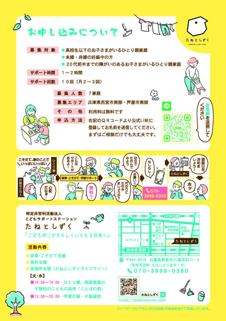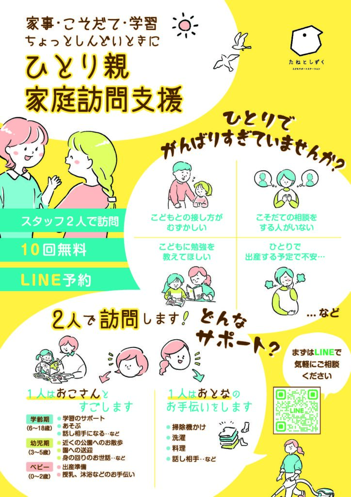 たねとしずくでは、ひとり親家庭の方へ家庭訪問のサポートを行っています。